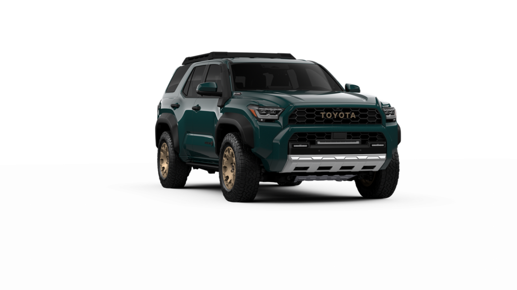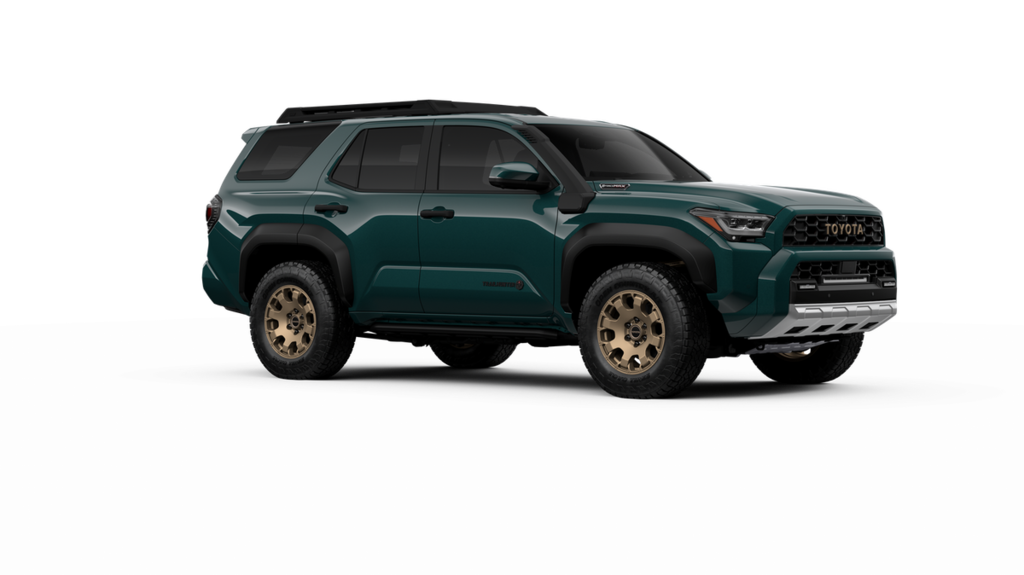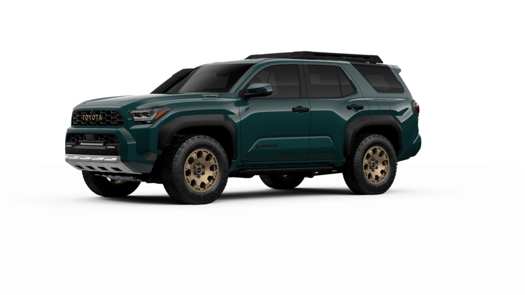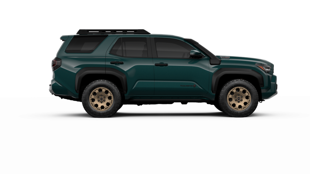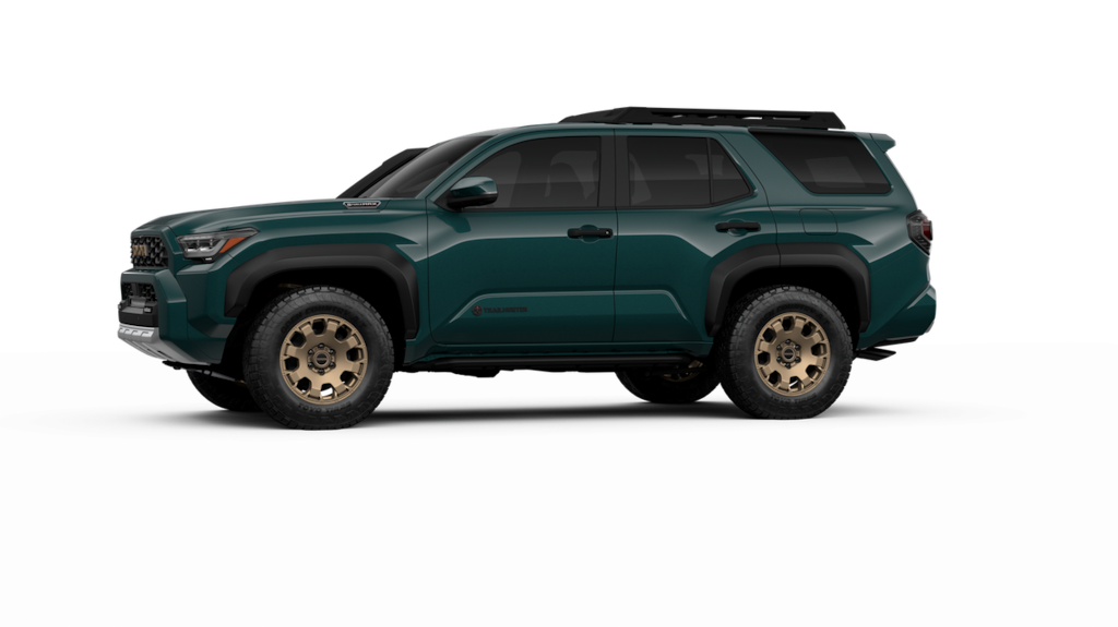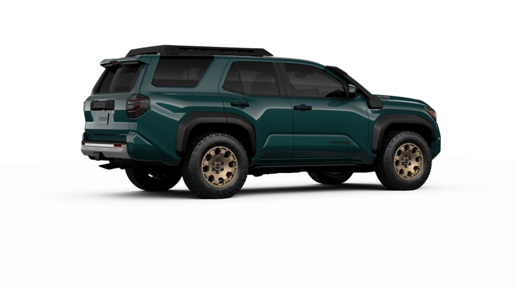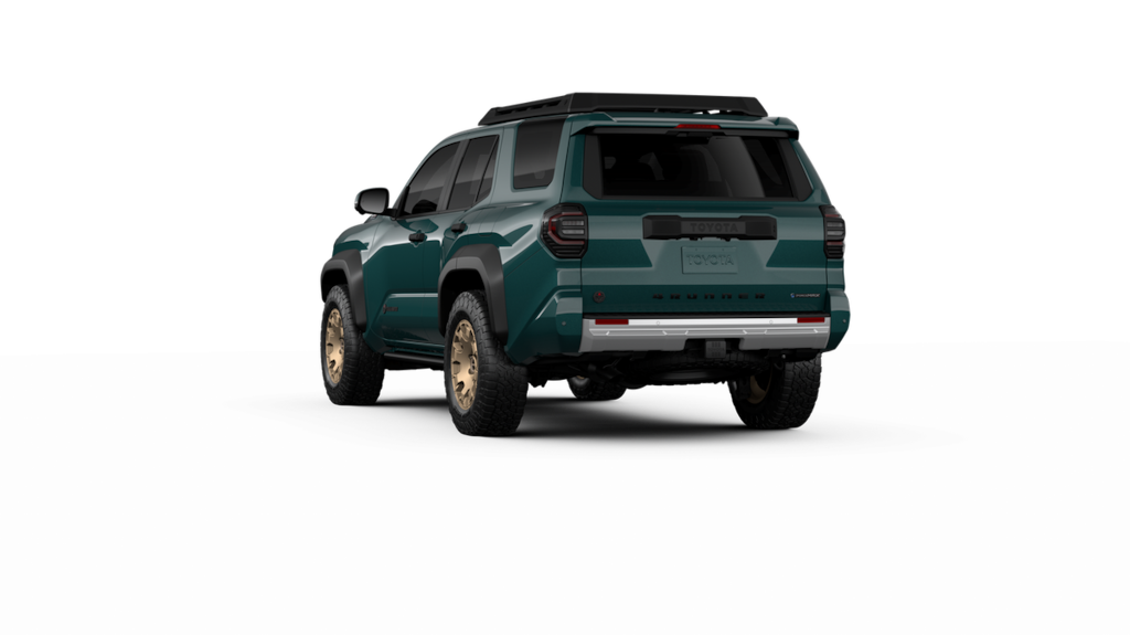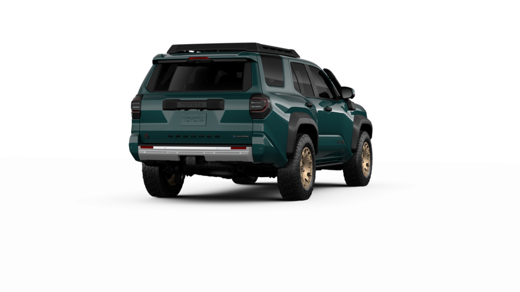 • Black 'TOYOTA' heritage grille, door handles, and overfenders color-keyed mirror caps and rear spoiler black 'TRAILHUNTER' and '4RUNNER' badges