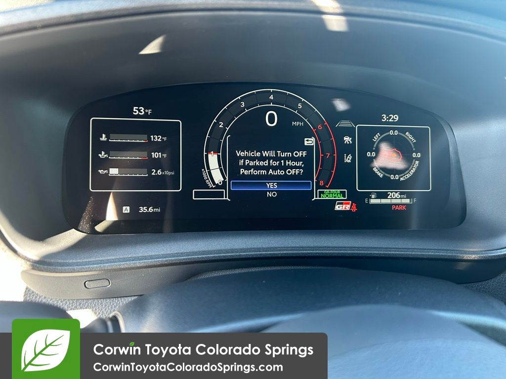 • 12.3-in. digital Multi-Information Display (MID) with GR start-up animation, AWD mode, turbo pressure, and gear shift indicators, odometer, outside temperature, fuel economy and trip information, current/average fuel economy, distance to empty, average speed, trip distance with timer, TPMS, scheduled maintenance, and compass and warning messages