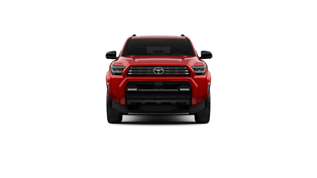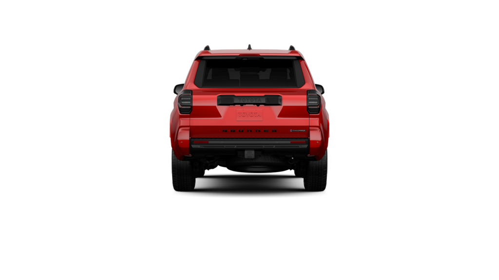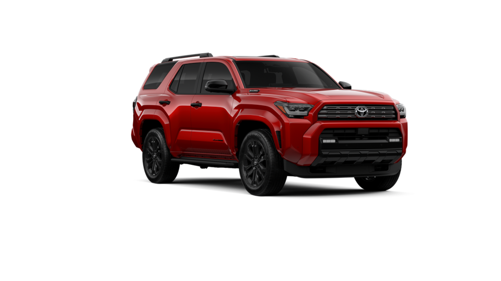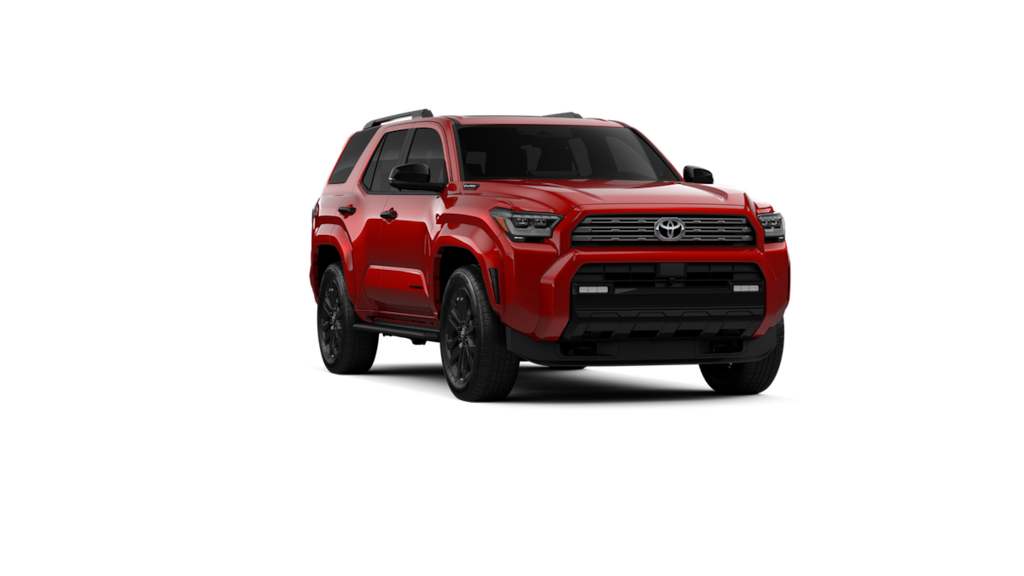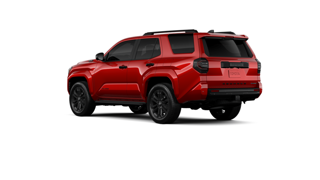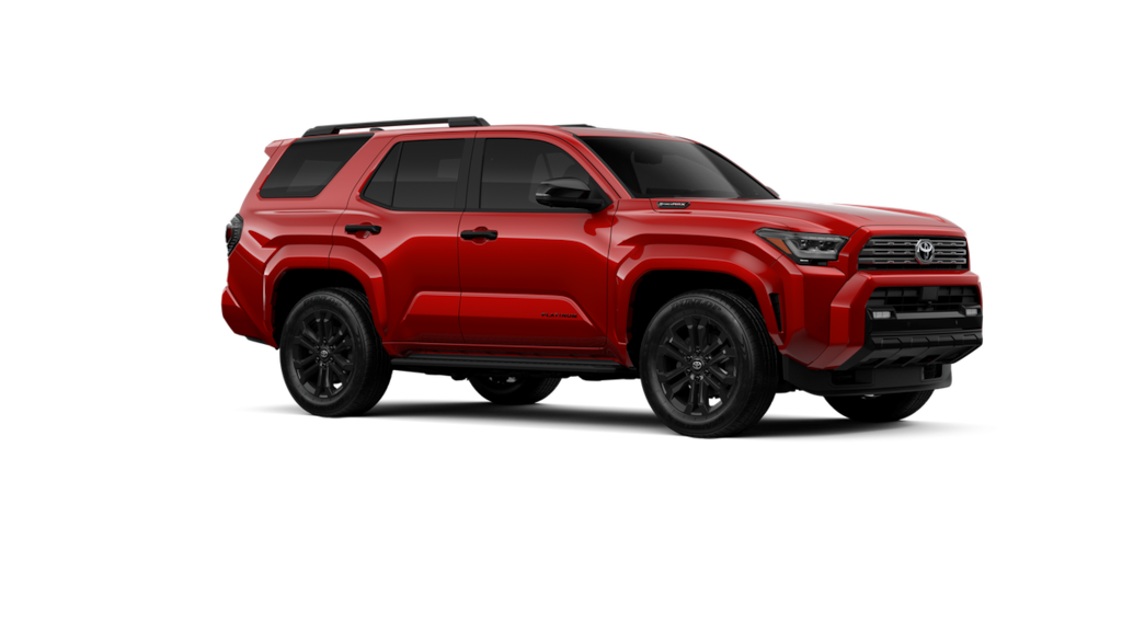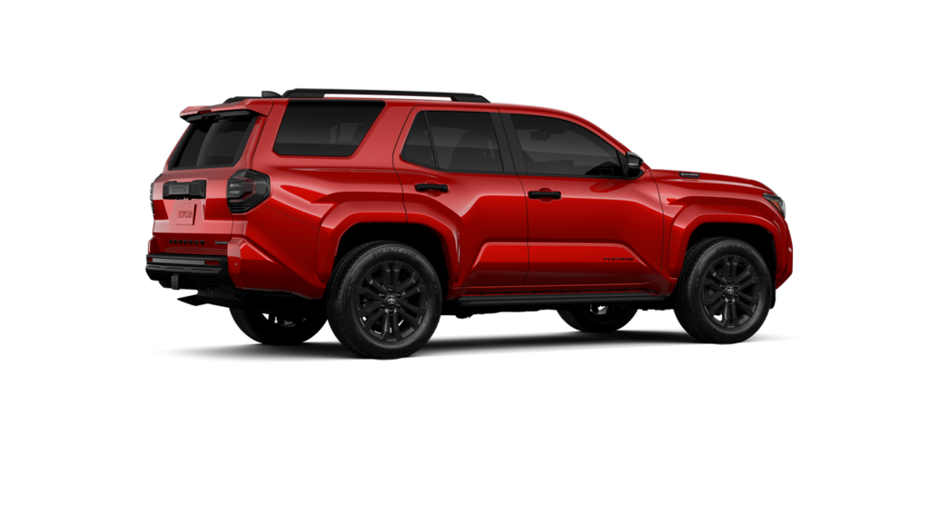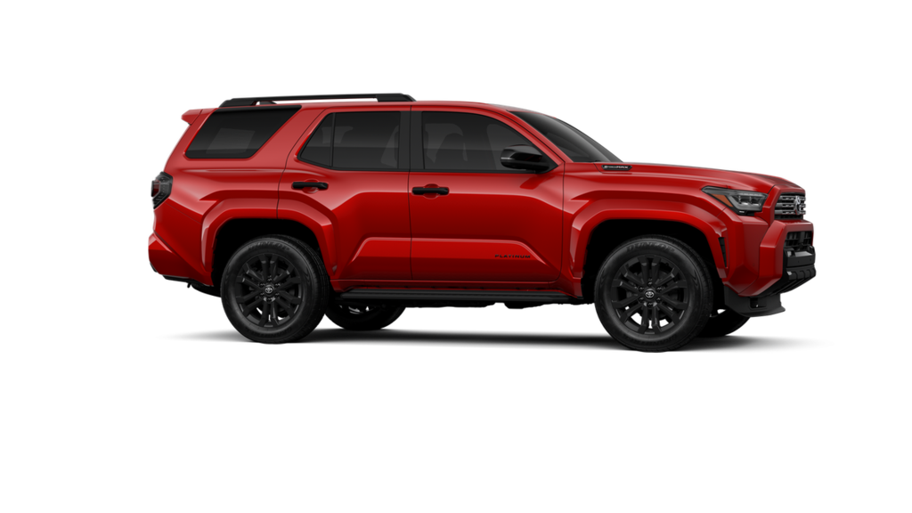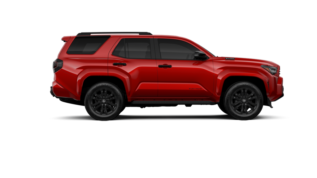 • Dark-chrome tri-bar grille gloss-black mirror caps and door handles color-keyed overfenders and rear spoiler gloss-black 'PLATINUM' and '4RUNNER' badges