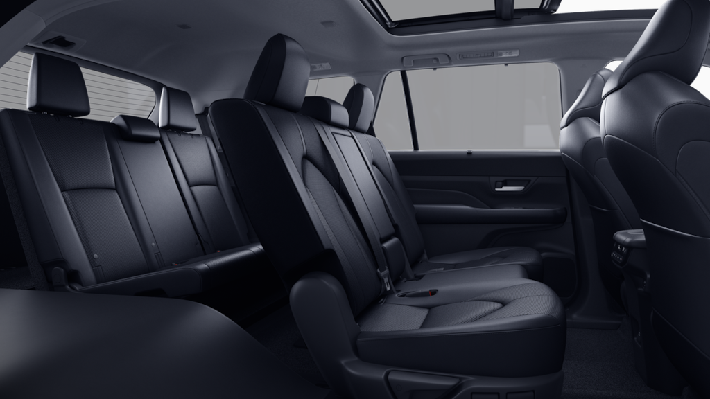 • 7-passenger seating with second-row fold-down captain's chairs and fold-down inboard armrests, adjustable headrests and two cup holders mounted on the floor and 60/40 split, fold-down third-row seats with sliding headrests and recline function