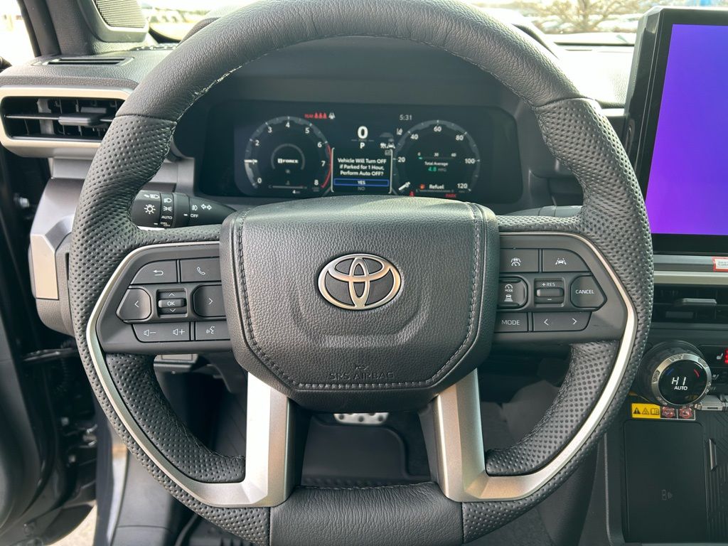 • TRD Sport Premium Package - TRD Sport Premium Package (4WD A/T) includes SofTex(R)-trimmed seats with heated and ventilated 8-way power-adjustable front seats, leather-trimmed heated steering wheel, 14-in. Toyota Audio Multimedia display, Panoramic View Monitor (PVM), JBL(R) Premium Audio with JBL(R) FLEX portable speaker, moonroof, Qi-compatible wireless charging, dual zone automatic climate control, Front and Rear Parking Assist with Automatic Braking (PA w/AB) and Pedestrian Detection, prewired auxiliary switches, digital rearview mirror, Integrated Trailer Brake Controller (ITBC), power open/close tailgate, Digital Key capability, 400W/120V AC power inverter, and power horizontal rear window