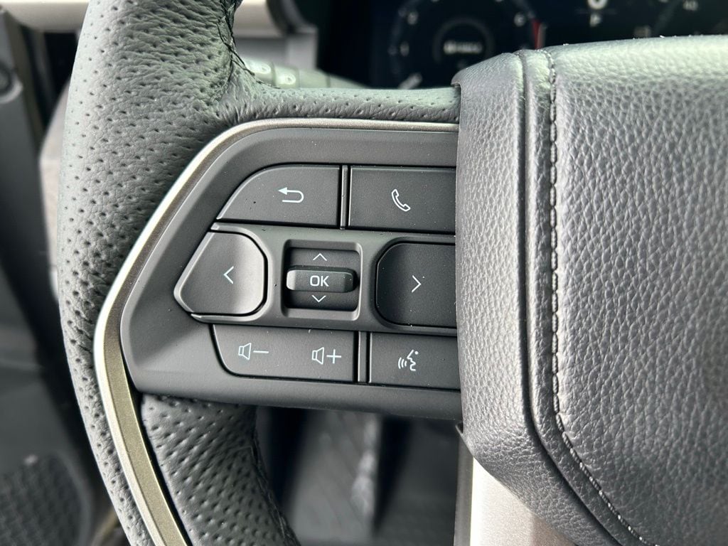 • Leather-trimmed manual tilt/telescopic heated steering wheel with phone, audio, display/infotainment, and Driver Assist controls