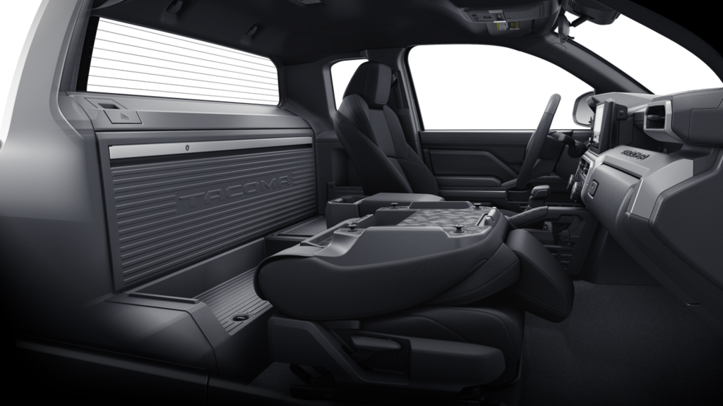 - Fold-flat passenger seat, lockable rear storage panel with integrated pegboard, and lockable deep storage compartment
