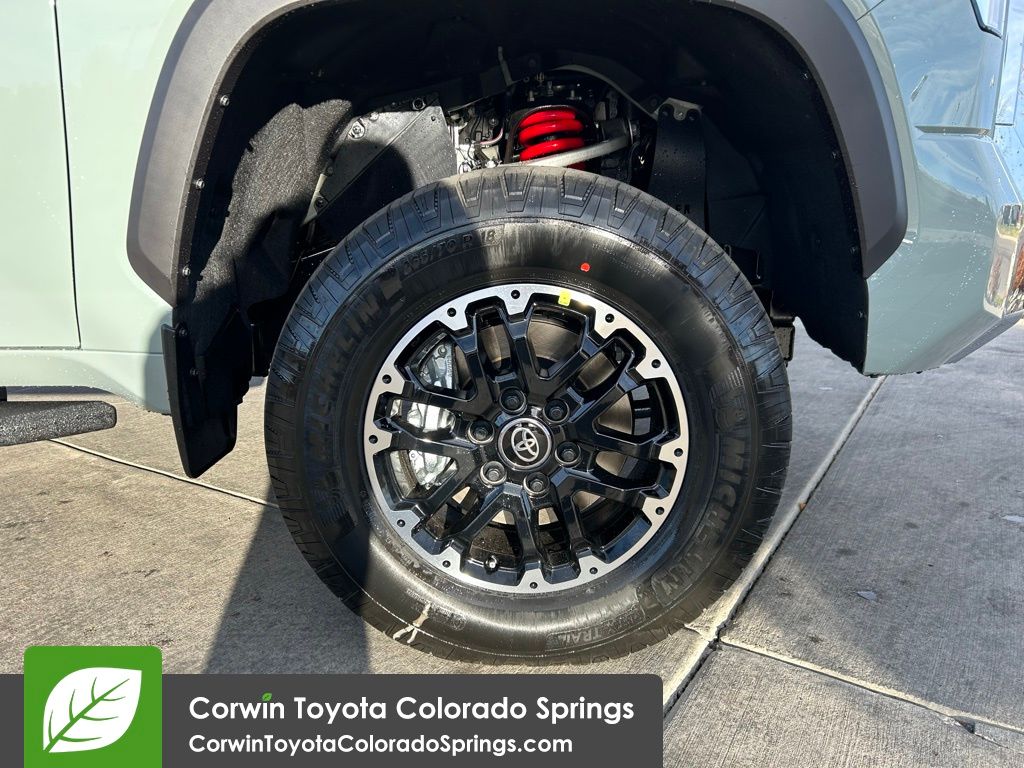 • TRD Off-Road Package - TRD Off-Road Package 18-in. TRD Off-Road alloy wheels with all-terrain tires TRD grille 'TRD OFF-ROAD' bedside decal Off-road suspension with Bilstein(R) shocks Skid plates Mudguards Red TRD engine start button TRD leather-wrapped shift knob Aluminum sport pedals Electronically controlled locking rear differential Multi-Terrain Select (MTS) Crawl Control (CRAWL) Downhill Assist Control (DAC)