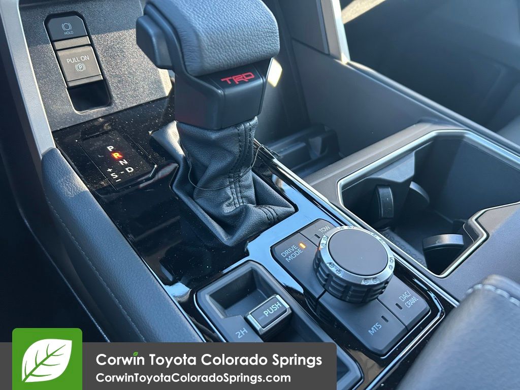 • TRD Off-Road Package - TRD Off-Road Package 20-in. TRD Off-Road matte-black alloy wheels with TRD center caps and all-terrain tires TRD grille with color-keyed surround 'TRD OFF-ROAD' bedside decal Off-road suspension with Bilstein(R) shocks Off-road front skid plate Mudguards Red TRD engine start button TRD leather-wrapped shift knob Aluminum sport pedals Electronically controlled locking rear differential Multi-Terrain Select (MTS) Crawl Control (CRAWL) Downhill Assist Control (DAC) PVM+BSM Black outside mirrors with Multi-Terrain Monitor (MTM) functionality