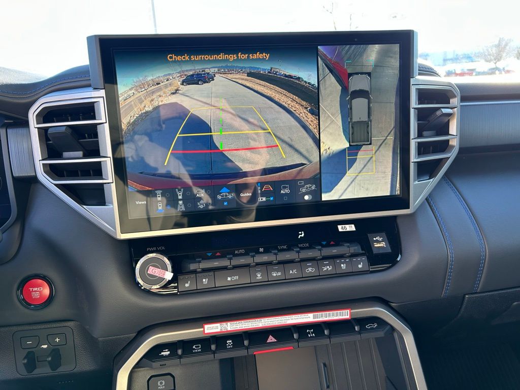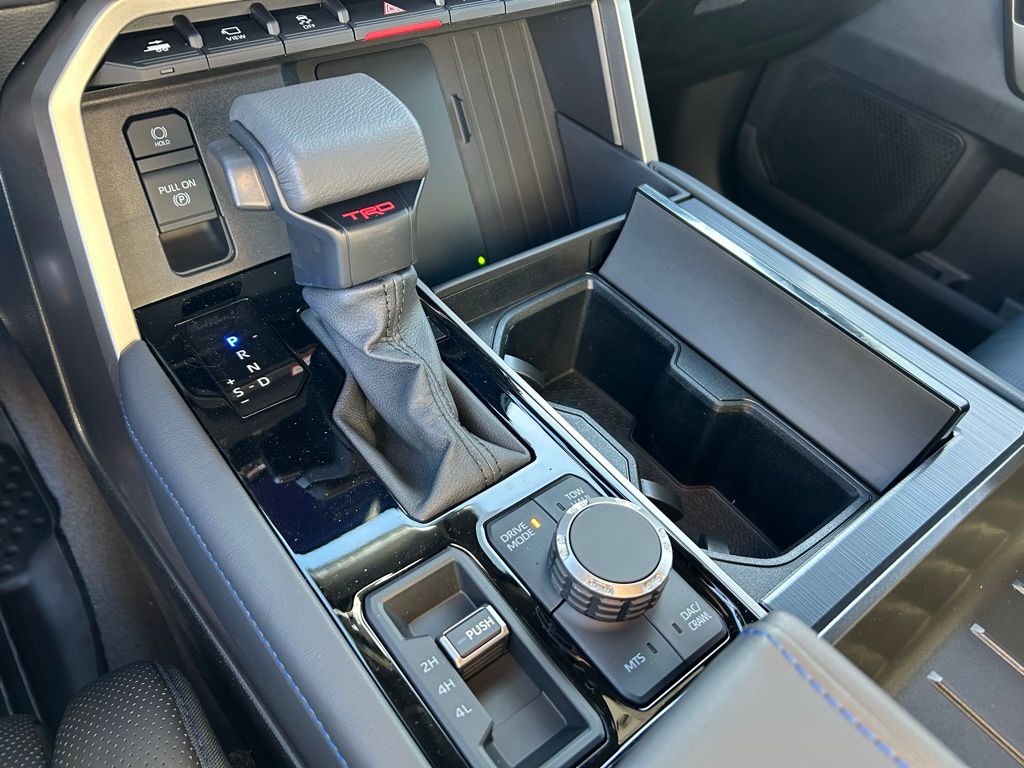 • TRD Off-Road Package - TRD Off-Road Package 20-in. TRD Off-Road matte-black alloy wheels with TRD center caps and all-terrain tires TRD grille 'TRD OFF-ROAD' bedside decal Off-road suspension with Bilstein(R) shocks Skid plates Mudguards Red TRD engine start button TRD leather-wrapped shift knob Aluminum sport pedals Electronically controlled locking rear differential Multi-Terrain Select (MTS) Crawl Control (CRAWL) Downhill Assist Control (DAC) PVM+BSM outside mirrors with Multi-Terrain Monitor (MTM) functionality