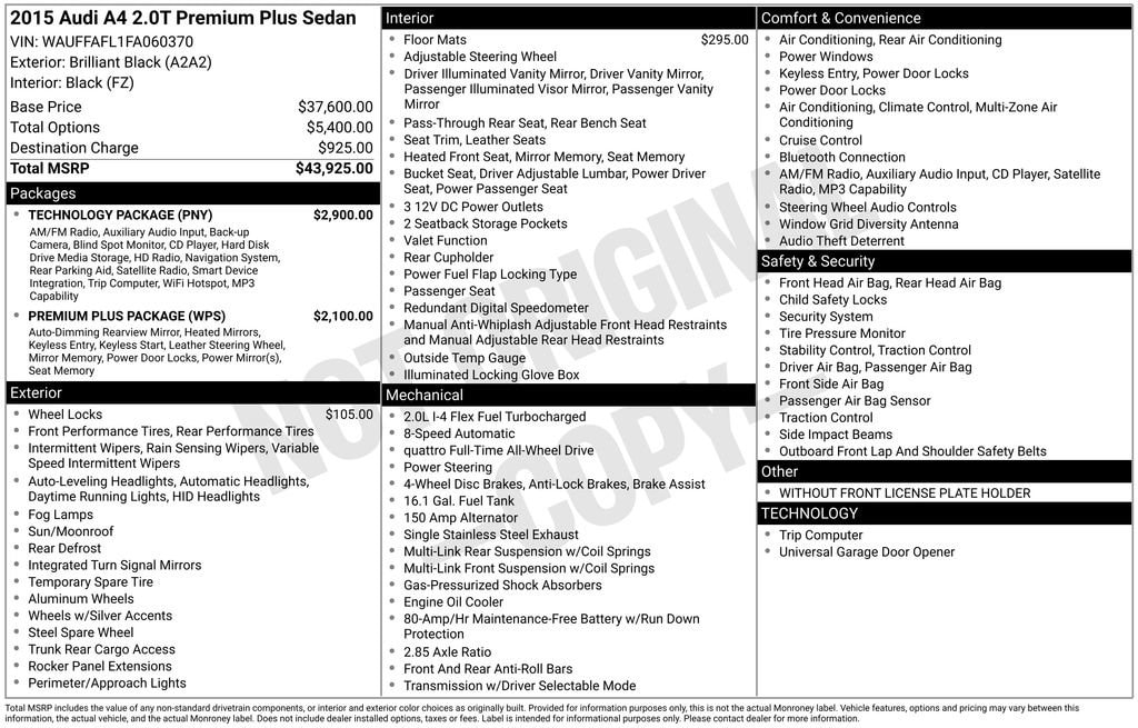 This 2015 Audi A4 2.0T Premium Plus quattro is a true testament to the brand's commitment to excellence. With its impressive array of features, sophisticated design, and dynamic performance, it's the perfect choice for the discerning driver who demands the best. We invite you to experience the remarkable capabilities of this Audi for yourself. Schedule a test drive today and discover the joy of owning a truly exceptional luxury sedan.