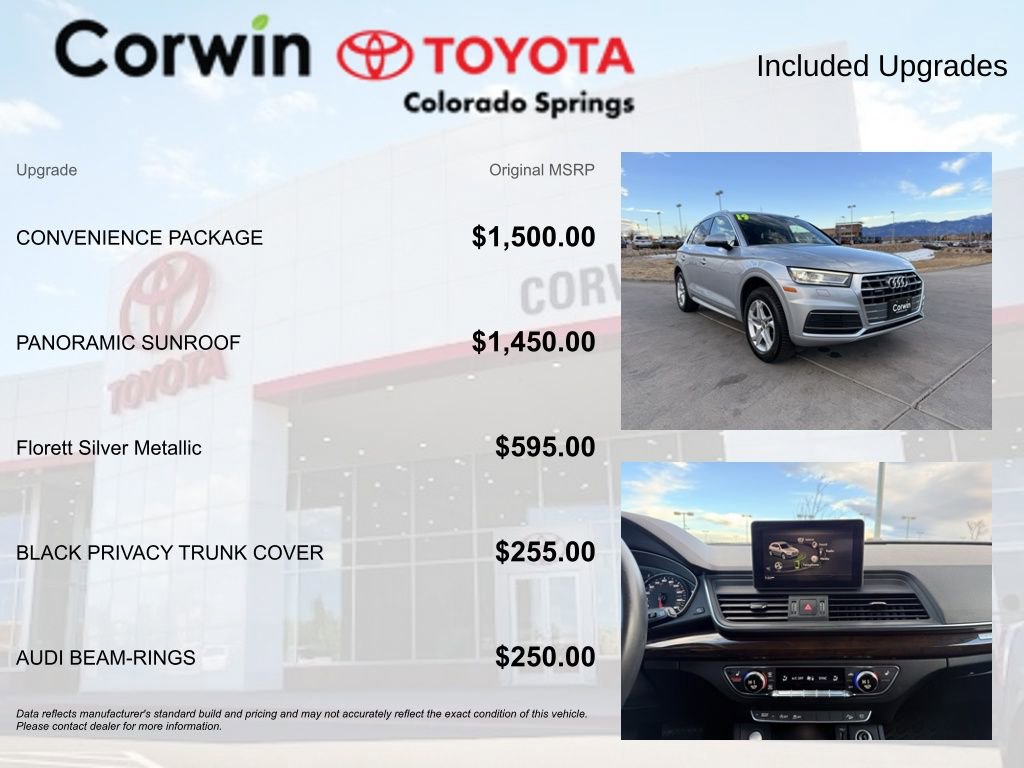 We invite you to visit our showroom and take this remarkable SUV for a test drive. Discover the true meaning of driving pleasure with the 2019 Audi Q5 2.0T Premium quattro.