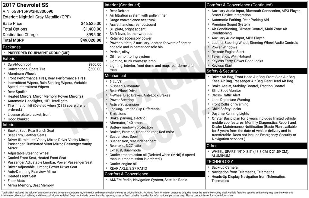 With its exceptional features, impressive performance, and stunning appearance, this 2017 Chevrolet SS Base is a true standout in the high-performance sedan segment. Don't miss your chance to make this remarkable car your own. Contact us today to learn more and schedule a test drive.