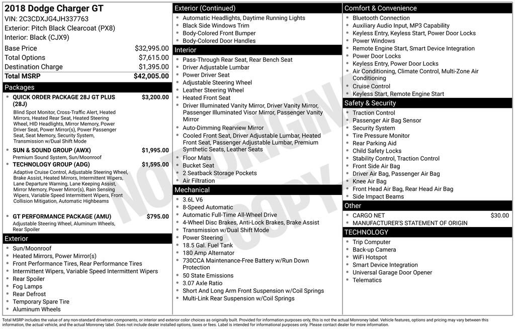 Priced below KBB Fair Purchase Price! 2018 Pitch Black Clearcoat Dodge Charger GT