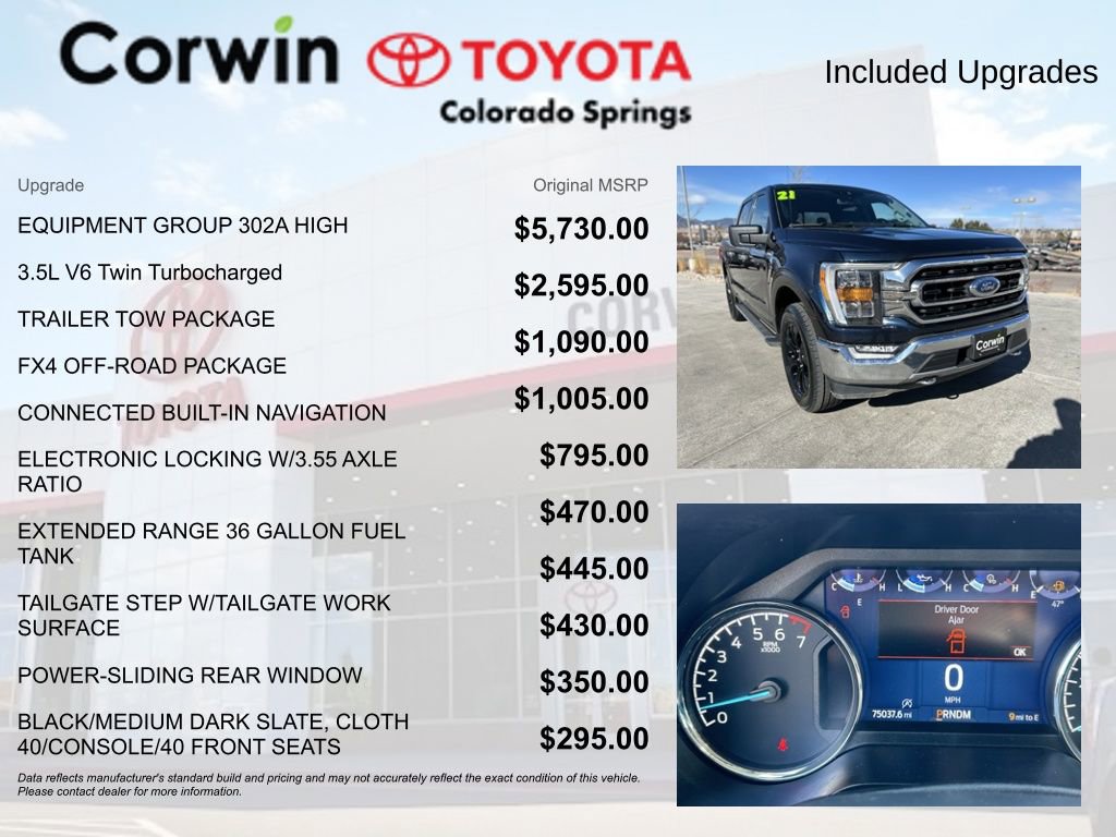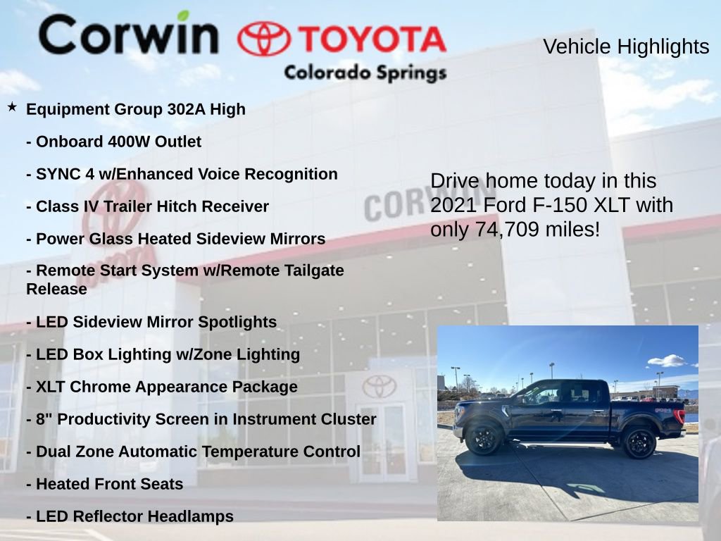 Whether you're looking for a capable work truck, an adventure-ready off-roader, or a versatile daily driver, this 2021 Ford F-150 XLT has everything you need and more. Experience the ultimate in power, capability, and comfort by scheduling a test drive today.