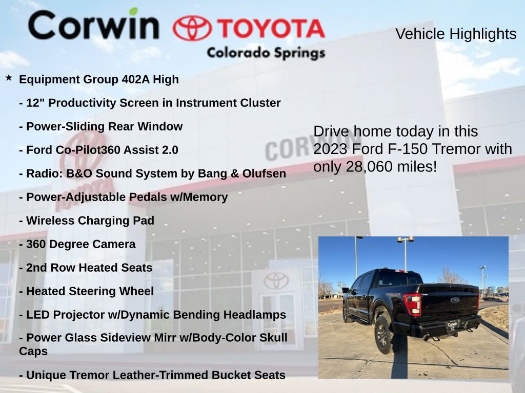 Whether you're hauling heavy loads, towing your trailer, or simply enjoying the open road, this 2023 Ford F-150 Tremor is ready to rise to the occasion. Experience the perfect blend of power, capability, and cutting-edge technology that will elevate your driving experience. Visit our showroom today to take this remarkable truck for a test drive and discover the difference it can make in your life.