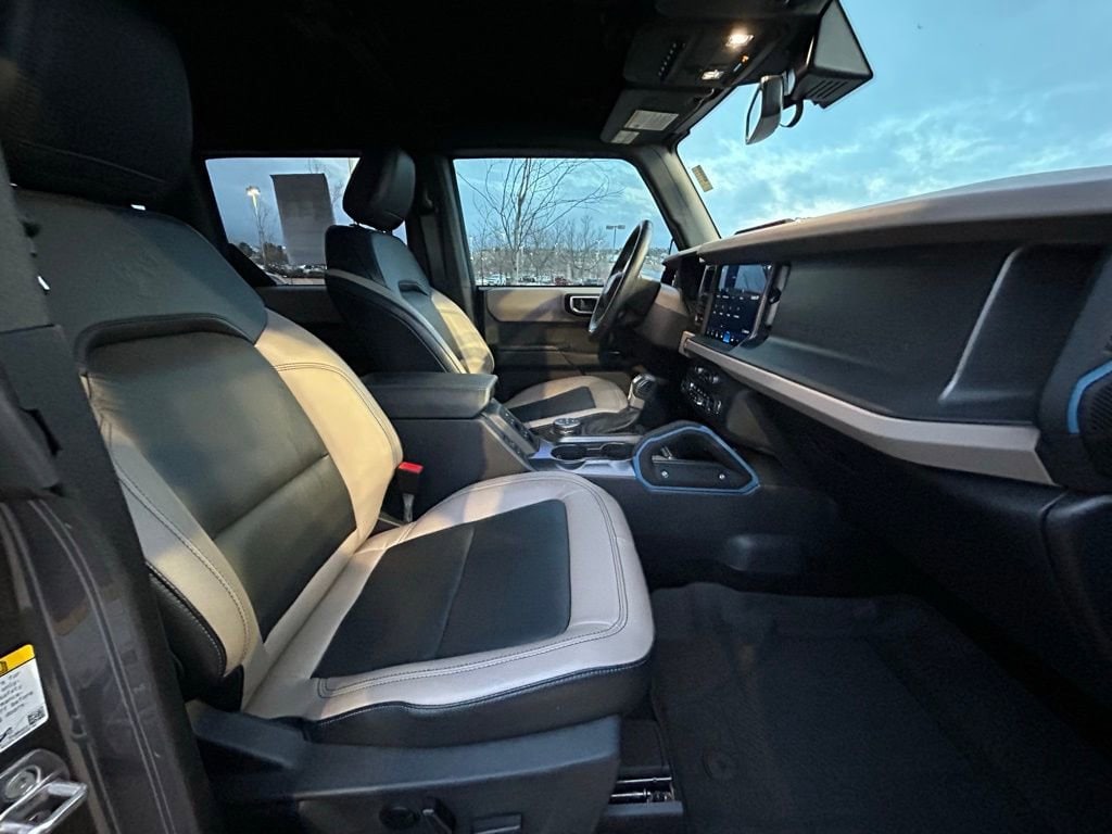 This Ford Bronco is well equipped and includes the following features and benefits, Wildtrak 4x4, 10 Speakers w/Subwoofer, 360-Degree Camera, Adaptive Cruise Control, Additional Sound Deadening, Equipment Group 354A High/Lux Package, Evasive Steering Assist, Front Parking Sensors, Heated Steering Wheel, Information on Demand Panel, Radio: B&O Sound System by Bang & Olufsen, Sideview Mirrors, SiriusXM Radio w/360L, Trailer Tow Package (DIO), Universal Garage Door Opener, Wireless Charging Pad.