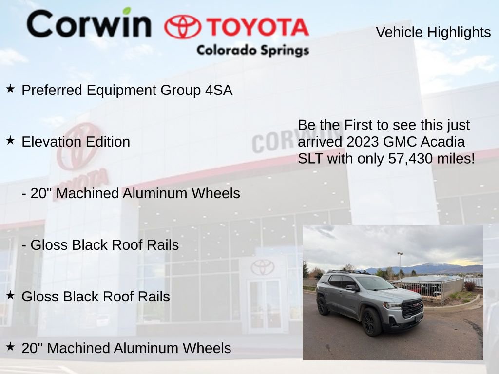 Elevate your driving experience and make a statement with the 2023 GMC Acadia SLT. Visit our showroom today to explore this exceptional SUV firsthand and discover why it's the perfect choice for discerning drivers like you.