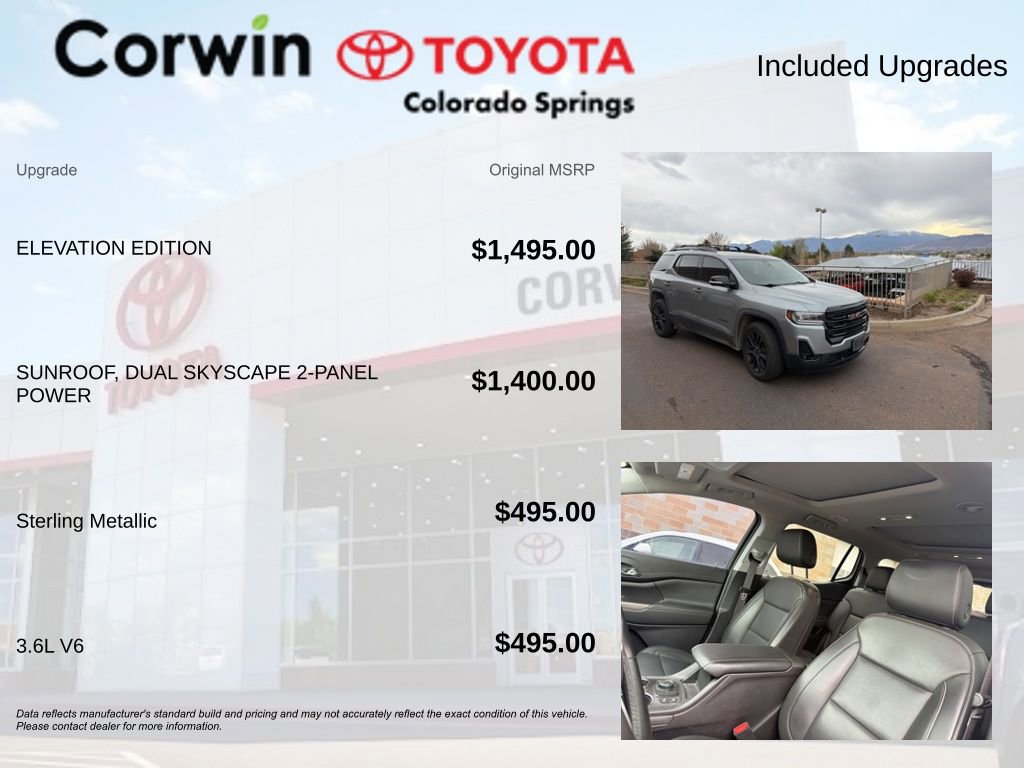 Powered by a robust 3.6L V6 SIDI engine mated to a 9-speed automatic transmission, the Acadia SLT delivers an exceptional blend of power and efficiency, with an impressive 19 city/26 highway MPG. The available All-Wheel Drive system ensures confident handling in a variety of driving conditions, making this SUV a true all-weather companion.