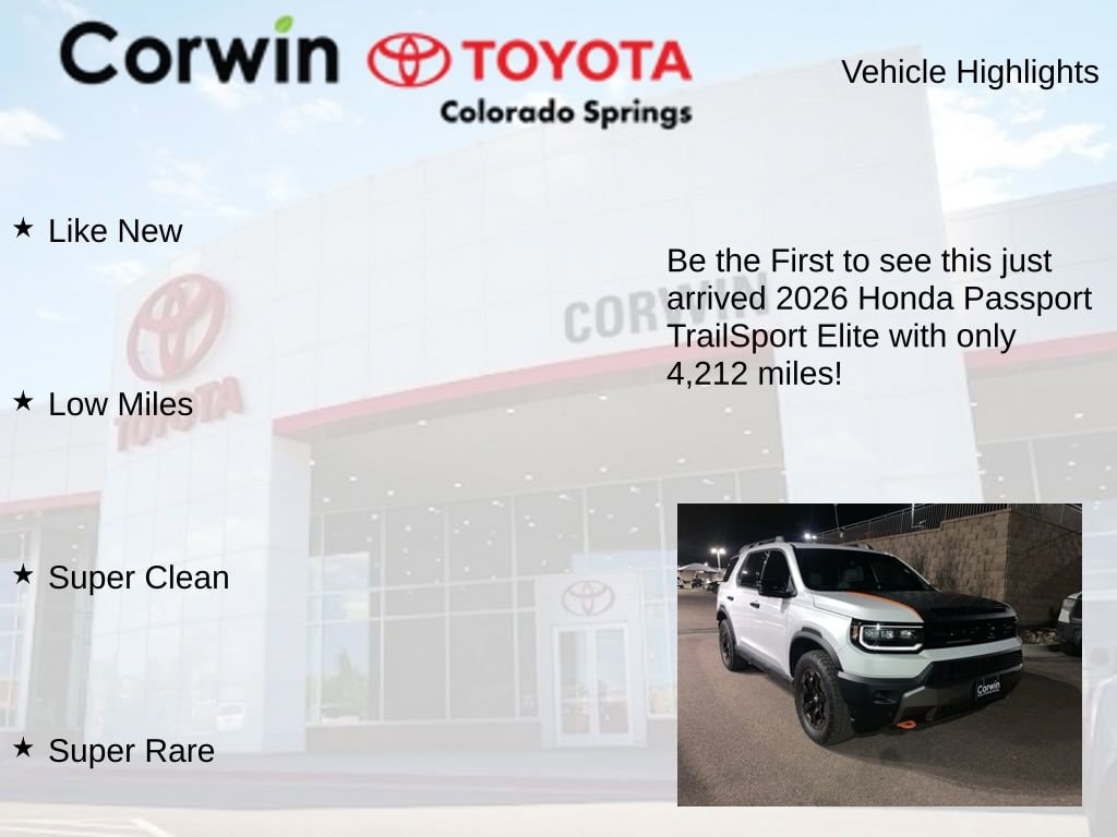 Friendly service, a huge selection of new Toyota vehicles, and fast flexible financing options are a few of the reasons why we are the new and pre-owned vehicle leaders in the greater Colorado Springs Area. Call us or stop in and see us today at Corwin Toyota Colorado Springs! Located at 5115 New Car Dr. Colorado Springs, CO 80923. (719) 598-2222 or visit us online at CorwinToyotaColoradoSprings.com. All prices must be verified with the dealer.