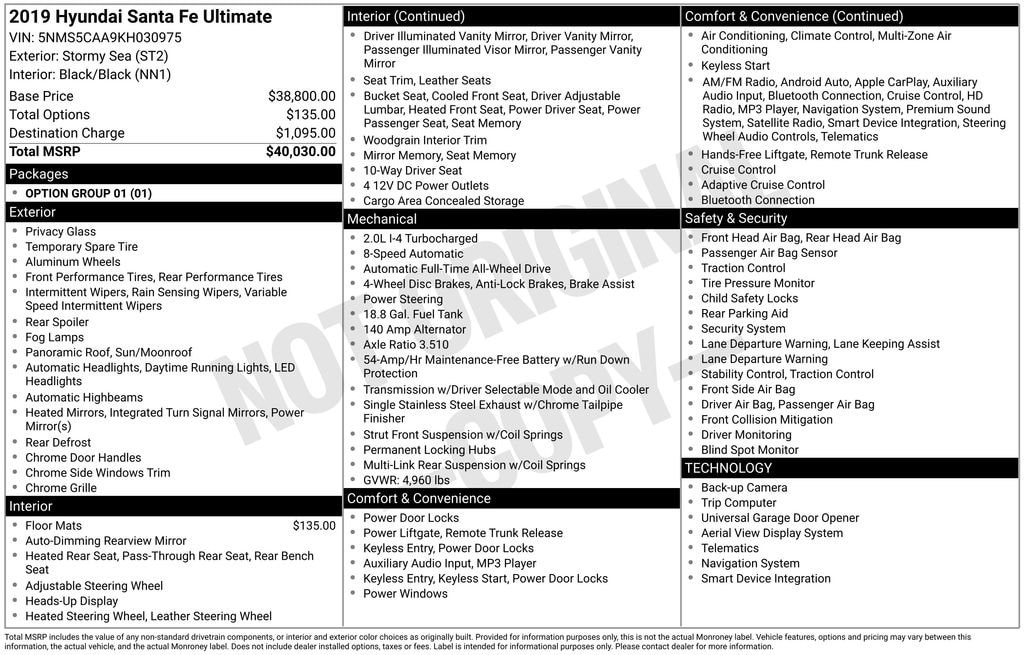 Take the first step towards owning this remarkable 2019 Hyundai Santa Fe Ultimate. Schedule a test drive today and discover the difference that true quality and innovation can make. We look forward to the opportunity to earn your business and welcome you to our family of satisfied customers.