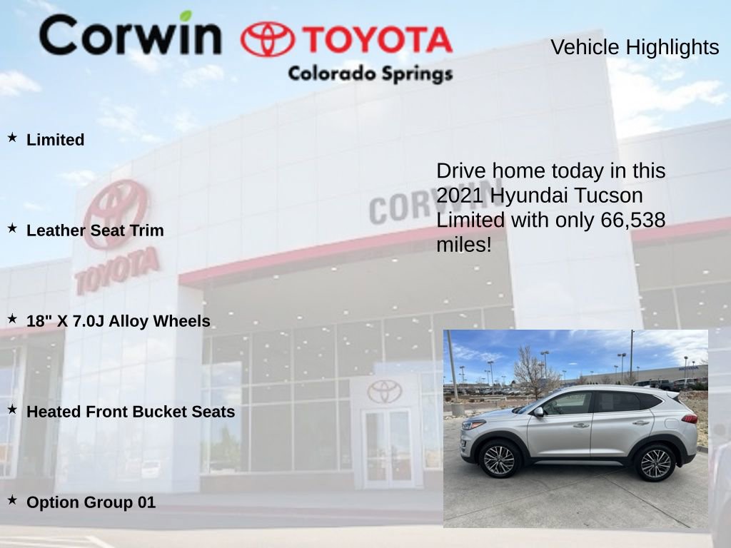 Whether you're commuting to the office, running errands around town, or embarking on a weekend adventure, this 2021 Hyundai Tucson Limited is ready to take you there in style and comfort. Experience the difference for yourself by scheduling a test drive today. We're confident you'll be impressed by the Tucson's exceptional blend of style, performance, and value.