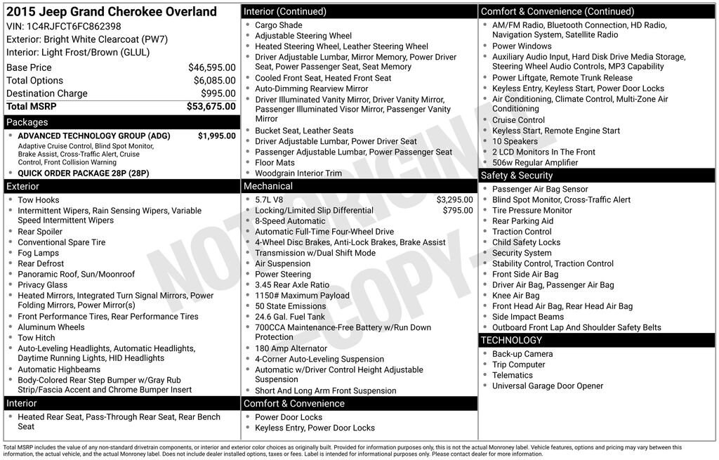 2015 Bright White Clearcoat Jeep Grand Cherokee Overland Clean CARFAX.