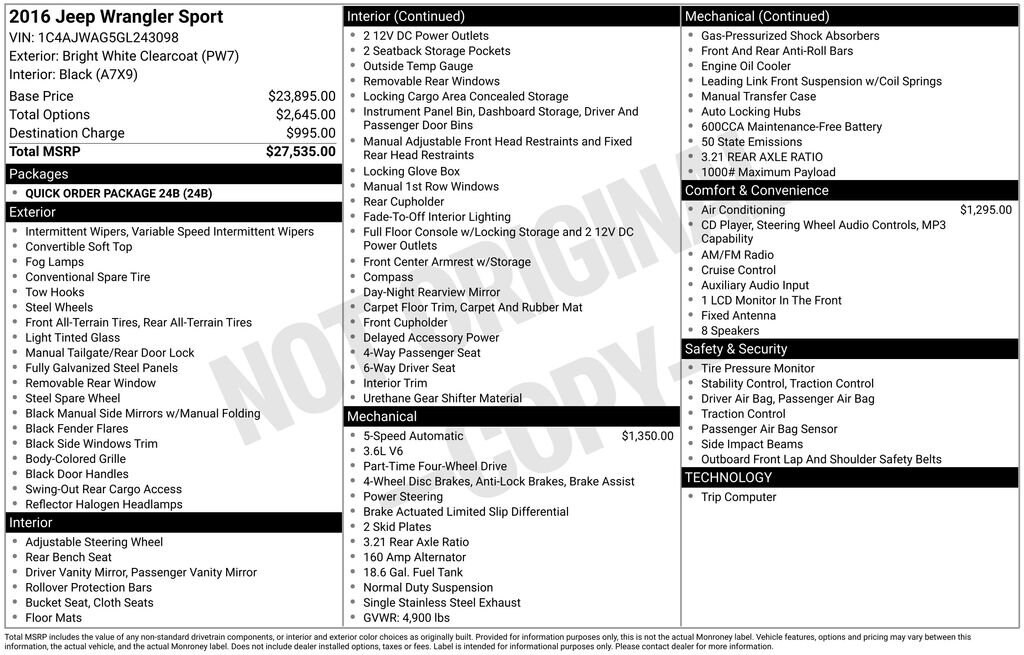 2016 Bright White Clearcoat Jeep Wrangler Sport Clean CARFAX.