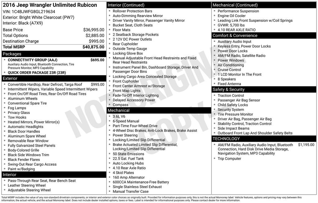 Beyond the impressive technology, this Wrangler Unlimited Rubicon boasts a rugged and capable performance. The 4.10 Rear Axle Ratio, Performance Suspension, and 4-Wheel Disc Brakes with ABS provide the confidence and control you need, whether navigating challenging off-road terrain or maneuvering through city streets.