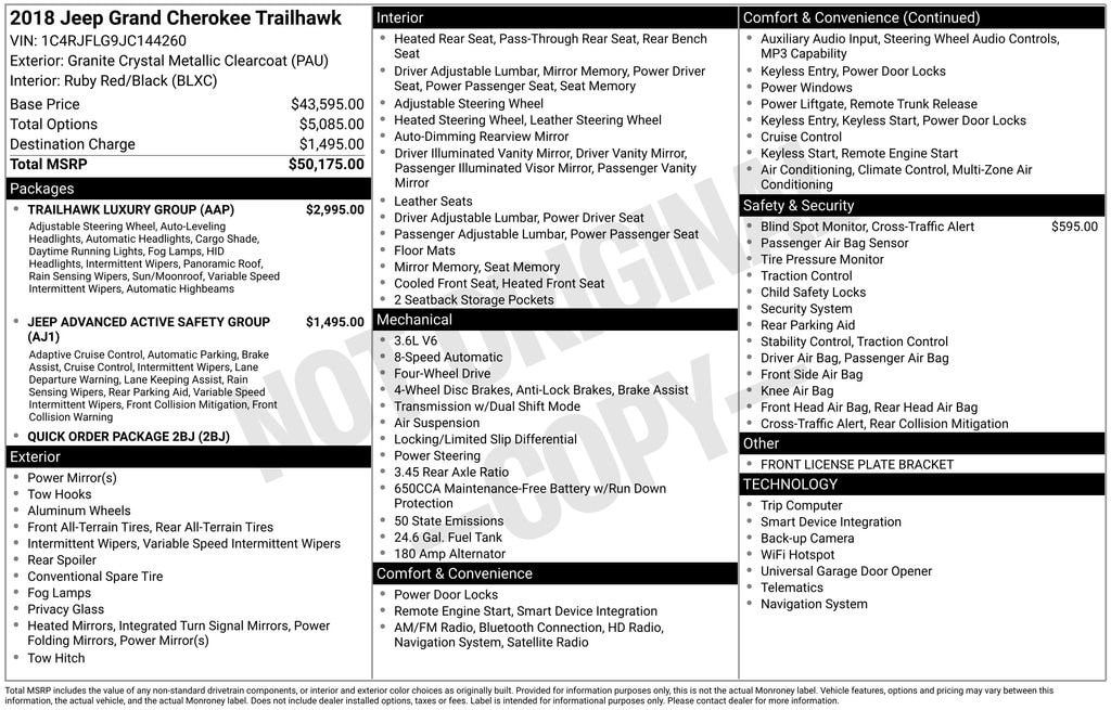 Whether you're embarking on off-road adventures or navigating the daily commute, this 2018 Jeep Grand Cherokee Trailhawk is the perfect companion. Experience the uncompromising blend of capability, comfort, and cutting-edge technology that sets this SUV apart. Visit our showroom today and let us demonstrate how this exceptional vehicle can elevate your driving experience.