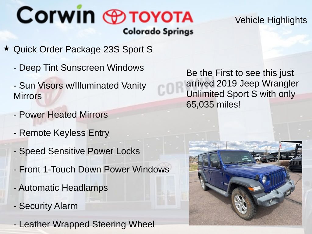 Whether you're tackling the great outdoors or navigating the daily commute, this 2019 Jeep Wrangler Unlimited Sport S is the perfect companion. With its uncompromising off-road abilities and impressive list of features, it's the ideal choice for those seeking a truly versatile and capable SUV.