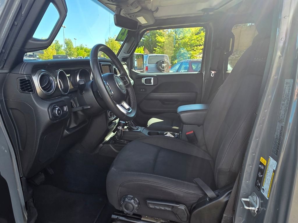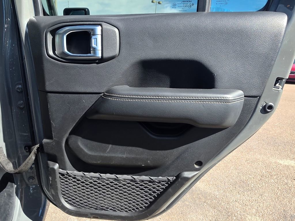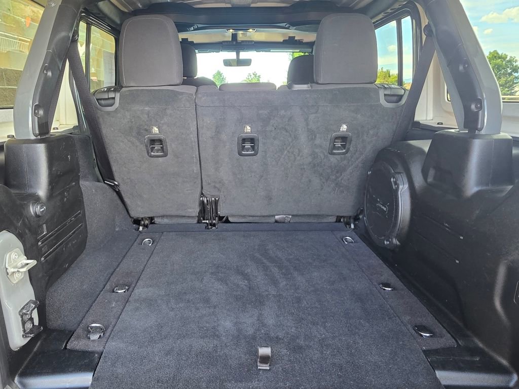 This Jeep Wrangler is well equipped and includes the following features and benefits, 4WD, Side Impact Beams Dual Stage Driver And Passenger Seat-Mounted Side Airbags Tire Specific Low Tire Pressure Warning Dual Stage Driver And Passenger Front Airbags Airbag Occupancy Sensor Rear Child Safety Locks Outboard Front Lap And Shoulder Safety Belts -inc: Rear Center 3 Point, Height Adjusters and Pretensioners ParkView Back-Up Camera, Non-Lock Fuel Cap w/o Discriminator Full-Size Spare Tire Mounted Outside Rear Clearcoat Paint Black Side Windows Trim Variable Intermittent Wipers Deep Tinted Glass Non-Metallic Paint Tires: 255/70R18 All Season Aluminum Spare Wheel Black Door Handles Black Wheel Well Trim and Body-Colored Fender Flares Removable Rear Window Body-Colored Grille w/Chrome Accents Manual Convertible Top w/Fixed Roll-Over Protection and Top Manual Convertible Top w/Fixed Roll-Over Protection Swing-Out Rear Cargo Access Galvanized Steel/Aluminum/Magnesium Panels Conventional Rear Cargo Access, Sentry Key Engine Immobilizer 2 Seatback Storage Pockets Front Center Armrest w/Storage Perimeter Alarm 2 12V DC Power Outlets 2 12V DC Power Outlets and 1 120V AC Power Outlet Manual Adjustable Front Head Restraints and Foldable Rear Head Restraints Full Floor Console w/Locking Storage, 2 12V DC Power Outlets and 1 120V AC Power Outlet Air Filtration 2 12V DC Power Outlets and 1 Interior 120V AC Power Outlet Full Floor Console w/Locking Storage, 2 12V DC Power Outlets and 1 Interior 120V AC Power Outlet Sentry Key Immobilizer 60-40 Folding Split-Bench Front Facing Fold Forward Seatback Cloth Rear Seat Urethane Gear Shifter Material Interior Trim -inc: Metal-Look Instrument Panel Insert, Metal-Look Door Panel Insert, Metal-Look Console Insert and Metal-Look Interior Accents Driver Information Center Outside Temp Gauge 6-Way Driver Seat -inc: Manual Recline, Height Adjustment, Fore/Aft Movement and Manual Lumbar Support 4-Way Passenger Seat -inc: Manual Recline and Fore/Aft Movement Manual Tilt/Telescoping Steering Column 4G LTE Wi-Fi Hot Spot Mobile Hotspot Internet Access Leatherette Steering Wheel Illuminated Front Cupholder Illuminated Rear Cupholder Compass.