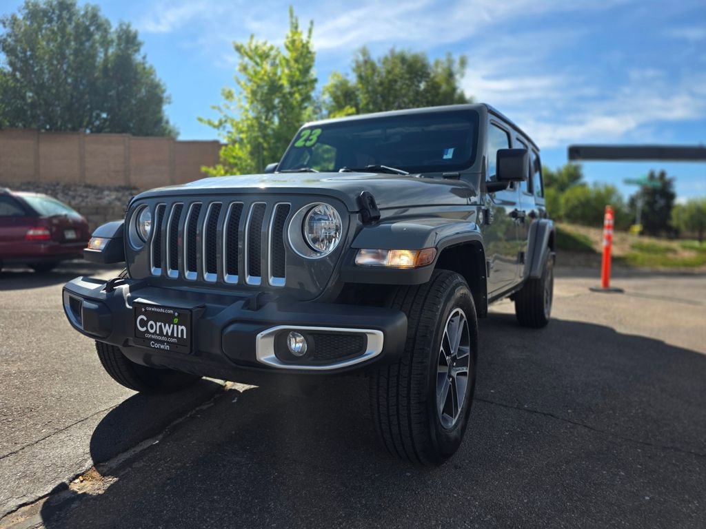 Priced below KBB Fair Purchase Price! 2023 Sting-Gray Clearcoat Jeep Wrangler Sahara CARFAX One-Owner. Clean CARFAX.