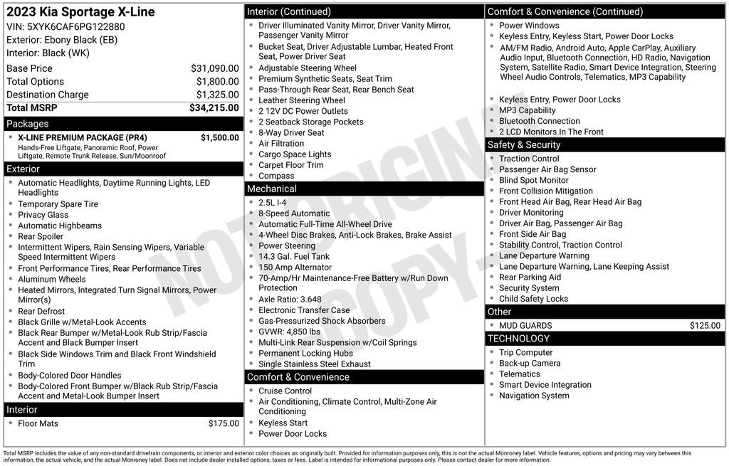 Priced below KBB Fair Purchase Price! 2023 Ebony / Black Kia Sportage X-Line Clean CARFAX.