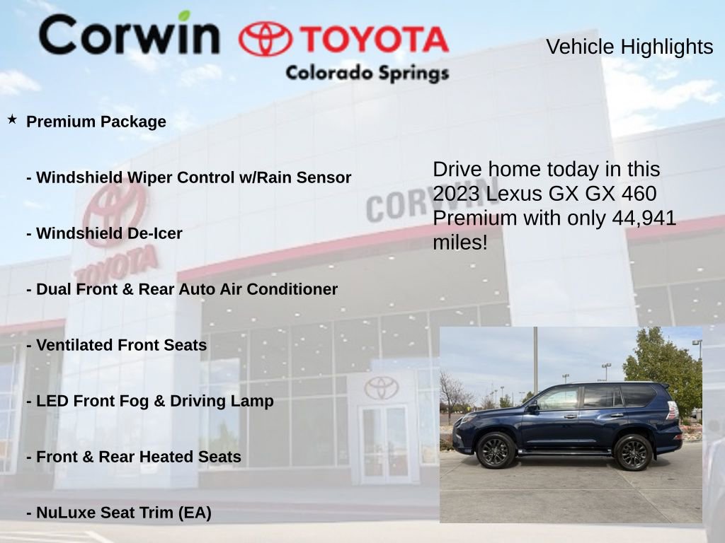 Experience the exceptional versatility and refined luxury of the 2023 Lexus GX 460. This premium SUV offers a commanding presence on the road, blending sophisticated style with exceptional off-road capabilities. Crafted with the discerning driver in mind, the GX 460 delivers a refined and responsive driving experience that will elevate your daily commute and weekend adventures alike.