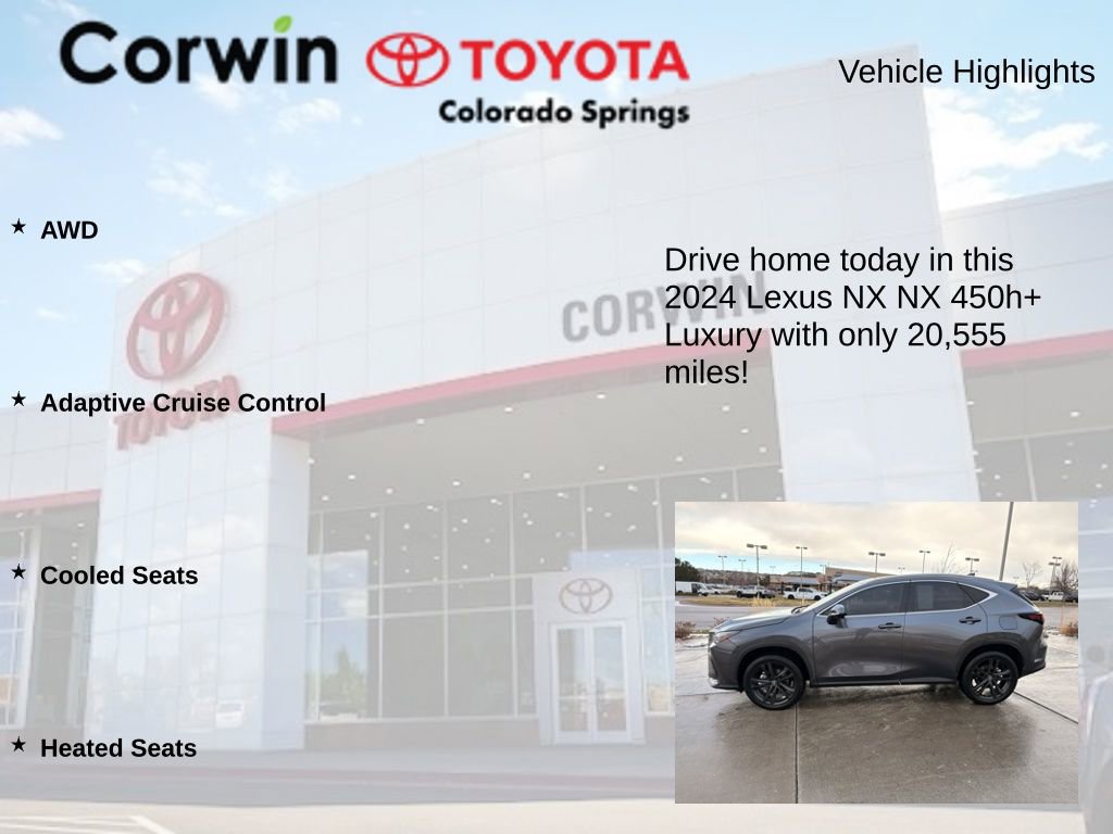 This Lexus NX is well equipped and includes the following features and benefits, AWD, Adaptive Cruise Control, Cooled Seats, Heated Seats.