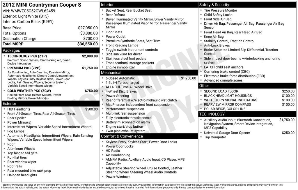 This MINI Cooper S Countryman is well equipped and includes the following features and benefits, AWD. 23/30 City/Highway MPG