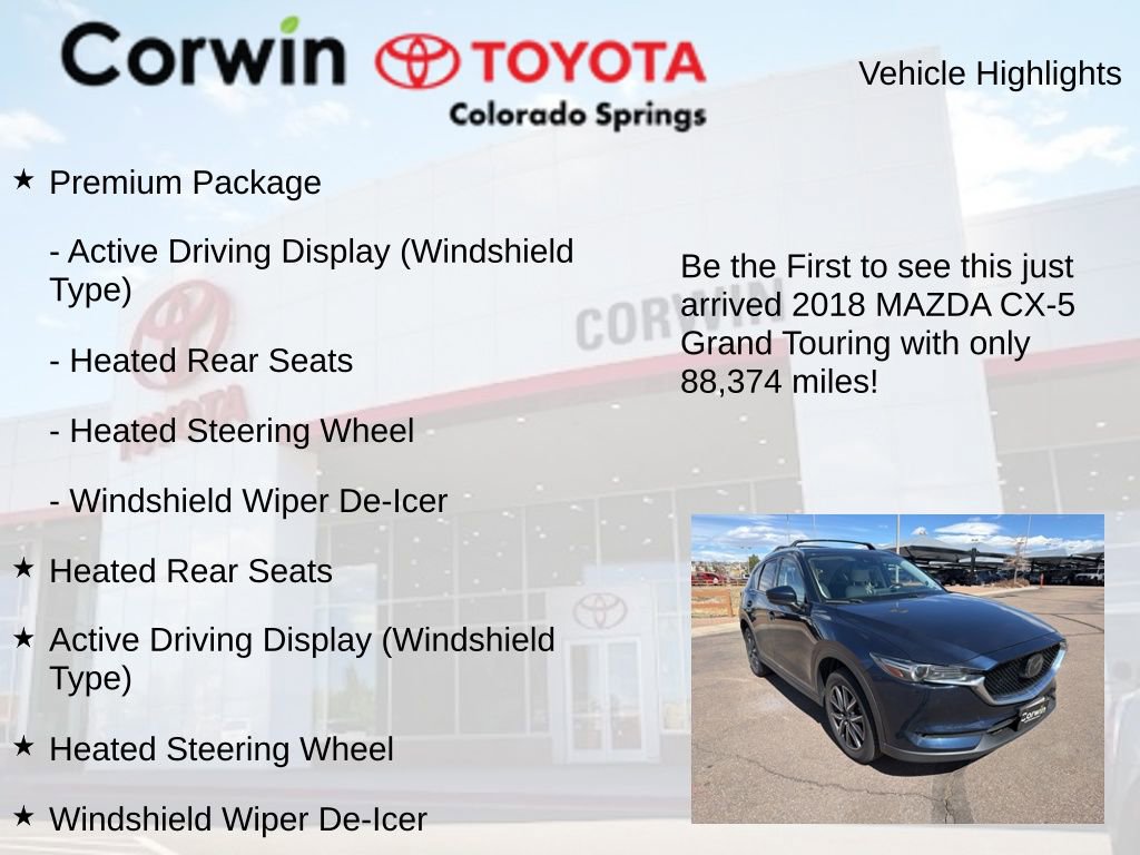 Whether you're commuting, running errands, or embarking on a weekend adventure, the 2018 Mazda CX-5 Grand Touring is the perfect companion. With its impressive capabilities, premium amenities, and striking good looks, this CX-5 is sure to exceed your expectations. We invite you to experience the difference for yourself by scheduling a test drive at our dealership.