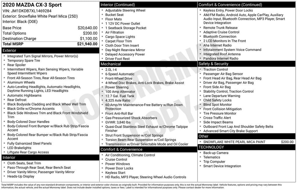 Elevate your driving experience with this stunning 2020 Mazda CX-3 Sport. Boasting a sleek and stylish exterior in the sought-after Snowflake White Pearl Mica paint, this compact crossover SUV is the perfect blend of practicality and sophistication.