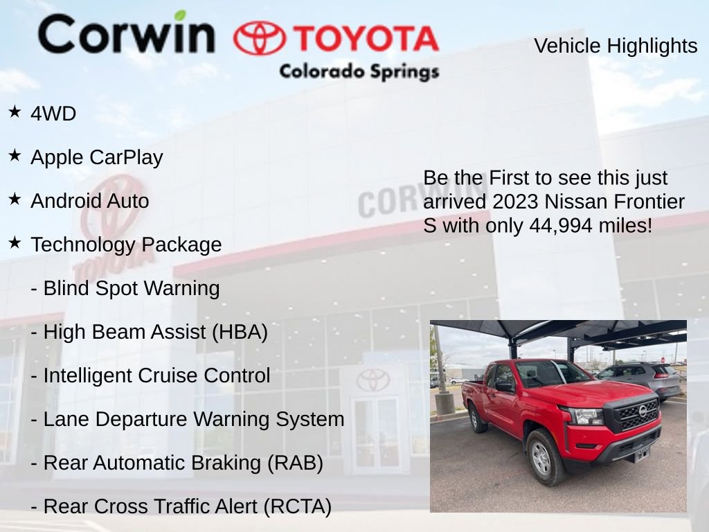 As you consider your options, remember that the 2023 Nissan Frontier S offers the perfect blend of power, technology, and comfort to elevate your driving experience. With its impressive performance, advanced safety features, and well-appointed interior, this Frontier is ready to take on any challenge you throw its way. Visit our showroom today and let us help you find the perfect Frontier to fit your lifestyle.