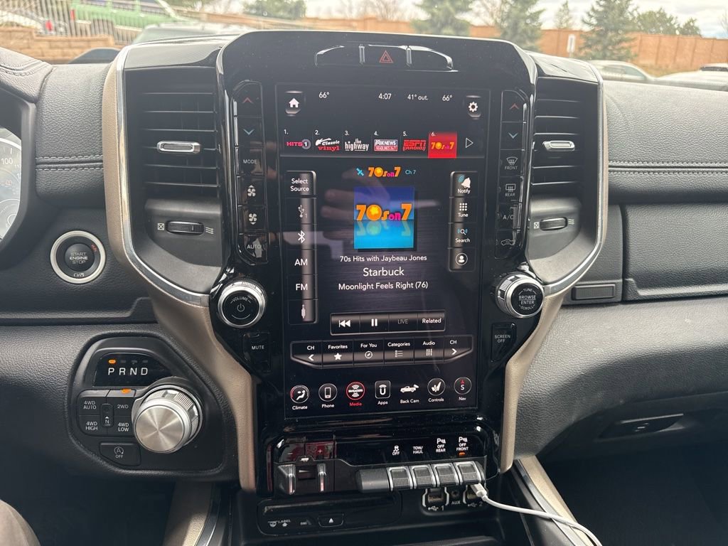 This Ram 1500 Laramie is meticulously equipped to elevate your driving experience. The Uconnect 4C Nav system with an 8.4-inch touchscreen puts advanced connectivity and navigation at your fingertips, while the premium harman/kardon sound system delivers concert-quality audio. Heated and ventilated front seats, a heated steering wheel, and a dual-pane panoramic sunroof add exceptional comfort and convenience.