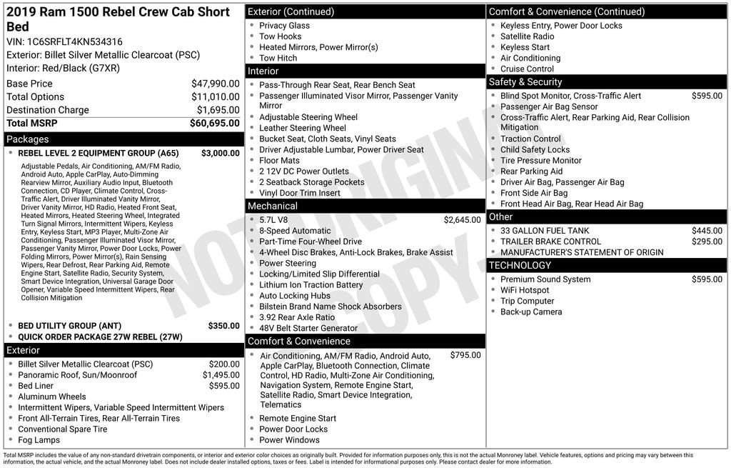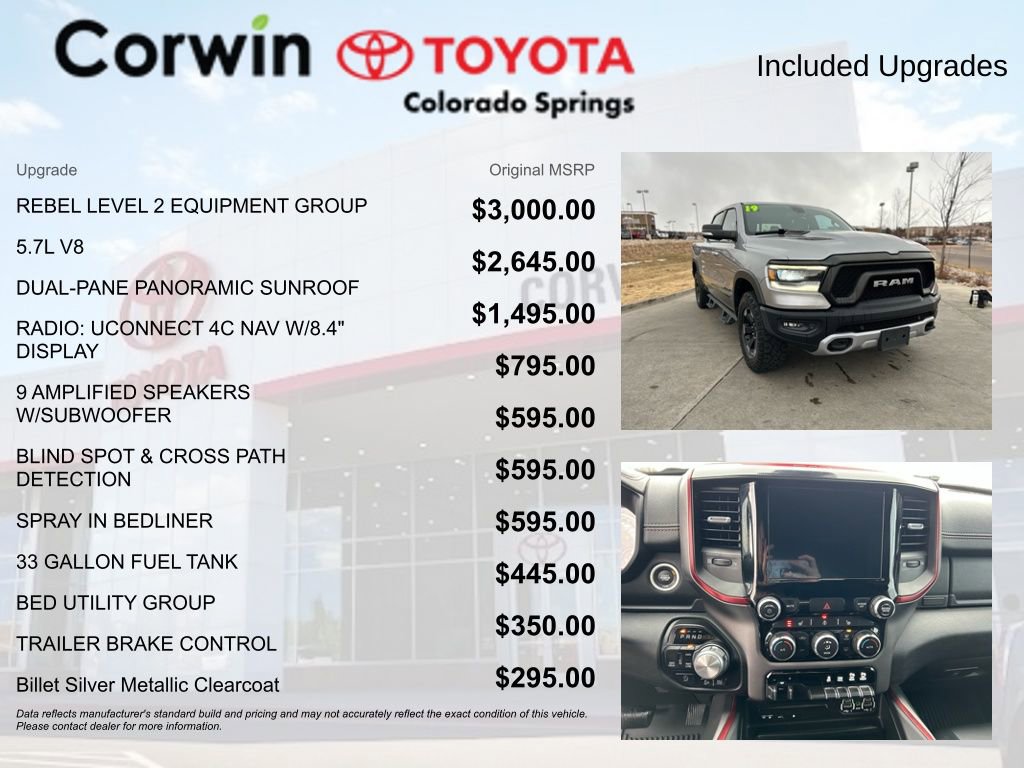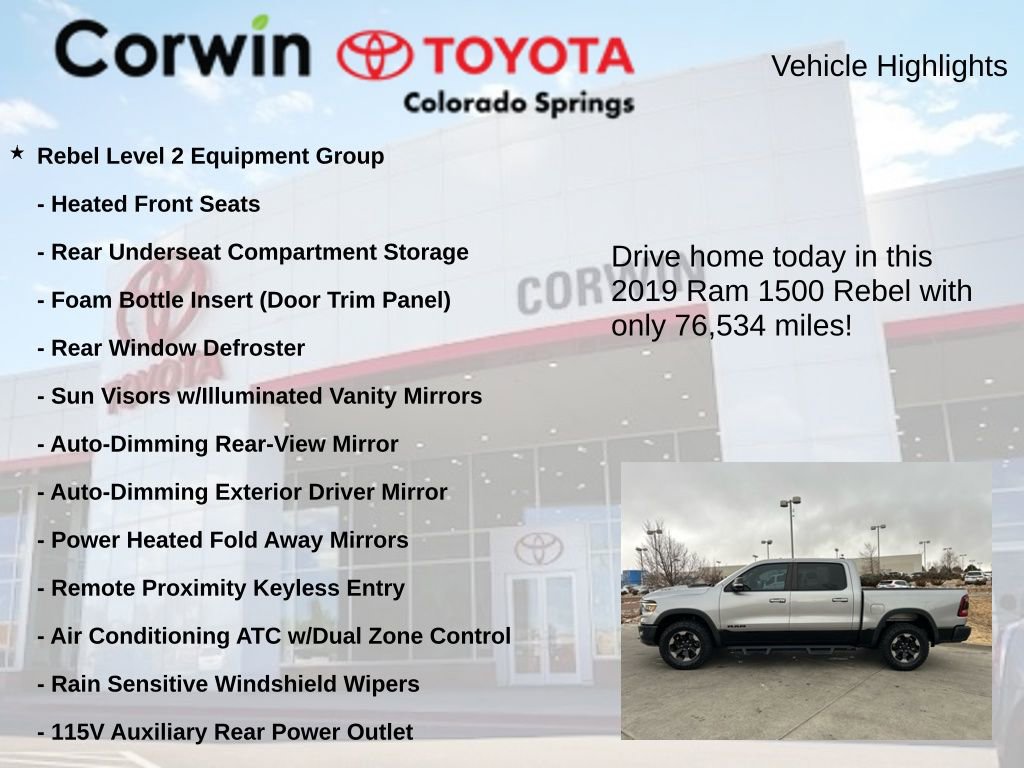 Whether you're tackling the daily commute or embarking on an off-road adventure, this 2019 Ram 1500 Rebel is ready to take on the challenge. Experience the perfect blend of power, capability, and technology by scheduling a test drive today. We're confident you'll be impressed by everything this exceptional truck has to offer.