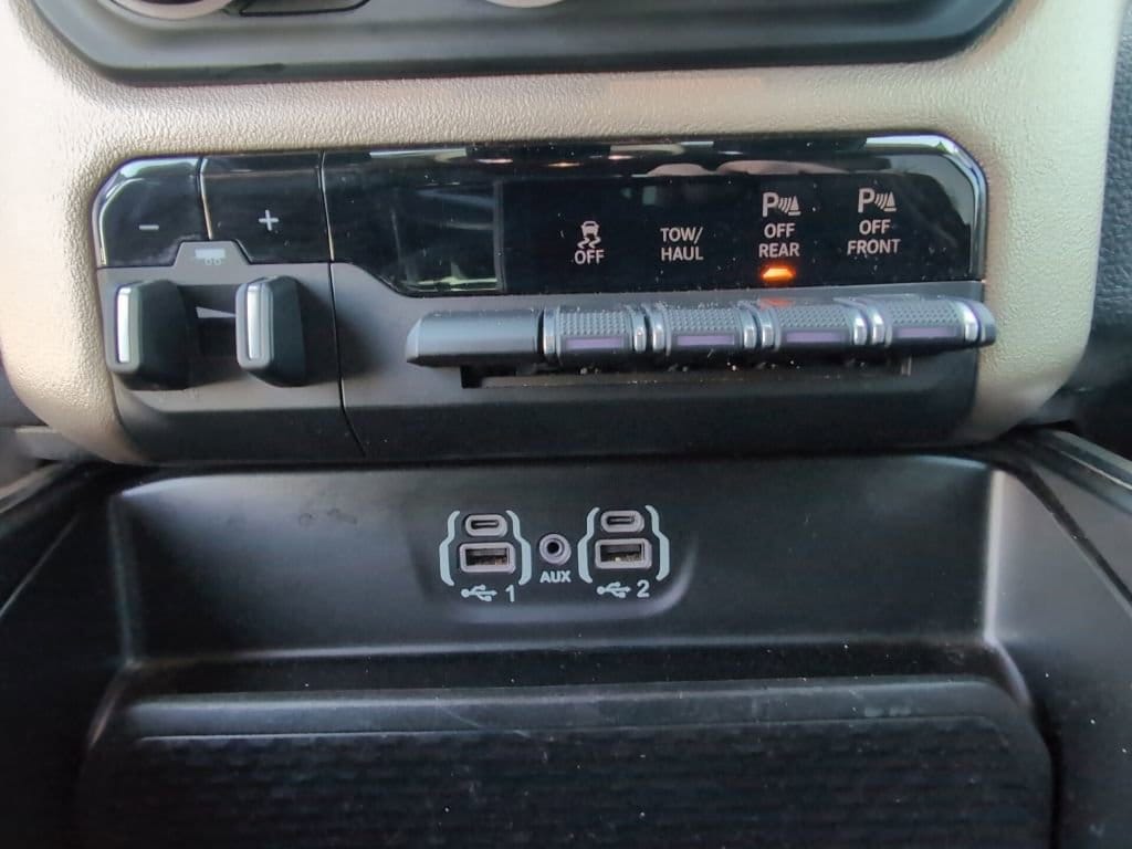 This Laramie model is well-equipped with features that enhance both functionality and comfort. The Laramie Level 1 Equipment Group adds conveniences like remote tailgate release, auto high beam control, and blind spot monitoring, while the Chrome Appearance Group and Bed Utility Group further elevate the truck's style and utility.