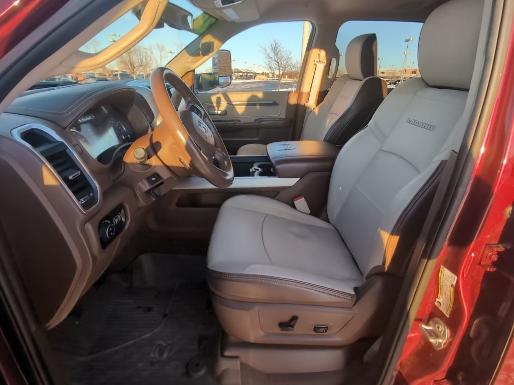 This Ram 3500 is well equipped and includes the following features and benefits, 2nd Row In Floor Storage Bins, Auto High Beam Headlamp Control, Blind Spot & Cross Path Detection, Cold Weather Group, CTR Stop Lamp w/Cargo View Camera, Engine Block Heater, Exterior Mirrors w/Memory, Foam Bottle Insert (Door Trim Panel), Laramie Level 1 Equipment Group, Mirror-Mounted Aux Reverse Lamps, Power Adjustable Convex Aux Mirrors, Power Adjustable Pedals w/Memory, Power Chrome Tow Mirrors w/Convex Spotter & Memory, Protection Group, Quick Order Package 2HH Laramie, Radio/Driver Seat/Mirrors/Pedals Memory, Rain Sensitive Windshield Wipers, Remote Tailgate Release, Surround View Camera System, Towing Technology Group, Trailer Reverse Guidance, Ventilated Front Seats, Winter Front Grille Cover. Odometer is 20326 miles below market average!