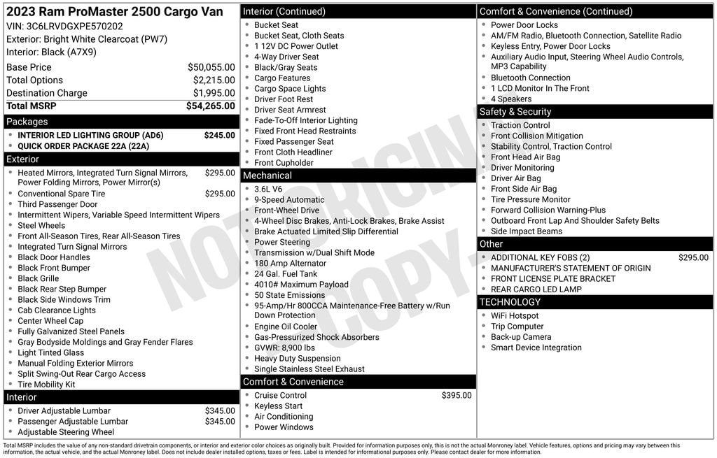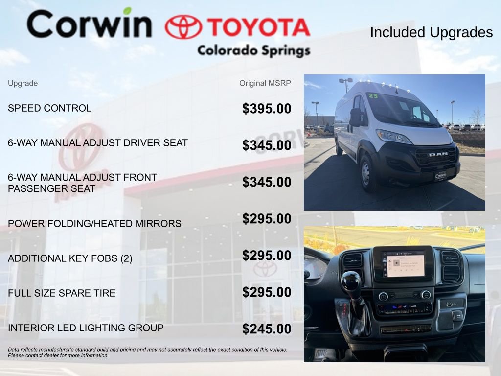 This Ram ProMaster 2500 is well equipped and includes the following features and benefits, Local Trade, Reflector Halogen Headlamps, Aero-Composite Halogen Headlamps, Trailer Style Mirrors, Center Wheel Cap, Forward Collision Warning-Plus, Collision Mitigation-Front, Driver Monitoring-Alert.
