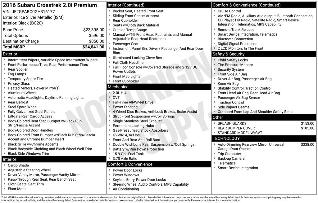 2016 Ice Silver Metallic Subaru Crosstrek 2.0i Premium CARFAX One-Owner. Clean CARFAX.