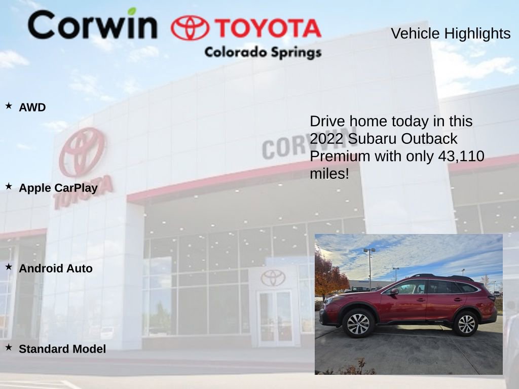 Priced below KBB Fair Purchase Price! 2022 Crimson Red Pearl Subaru Outback Premium CARFAX One-Owner. Clean CARFAX.
