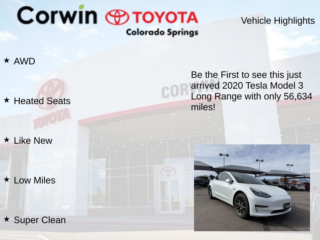 This Tesla Model 3 is well equipped and includes the following features and benefits, AWD, Heated Seats, Like New, Low Miles, Super Clean. Odometer is 13957 miles below market average! 124/116 City/Highway MPG