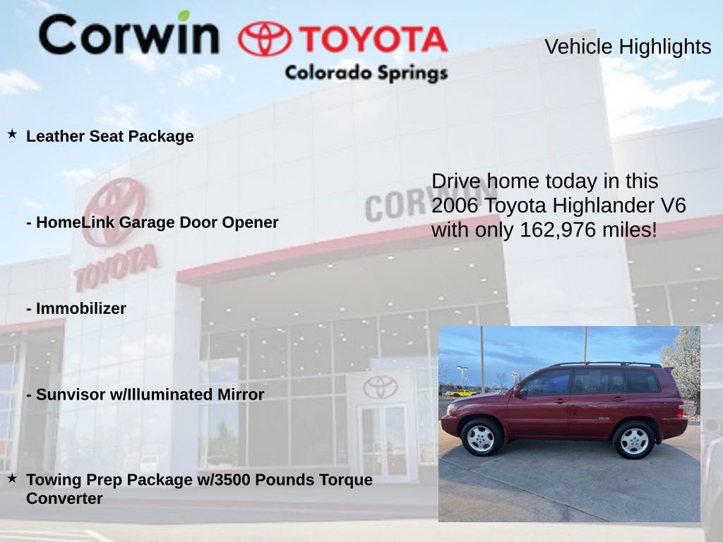 This 2006 Toyota Highlander V6 is a well-rounded and capable SUV that could be the perfect addition to your family. I encourage you to schedule a test drive and experience its impressive performance, functionality, and value for yourself. We're confident you'll be impressed by what this Highlander has to offer.