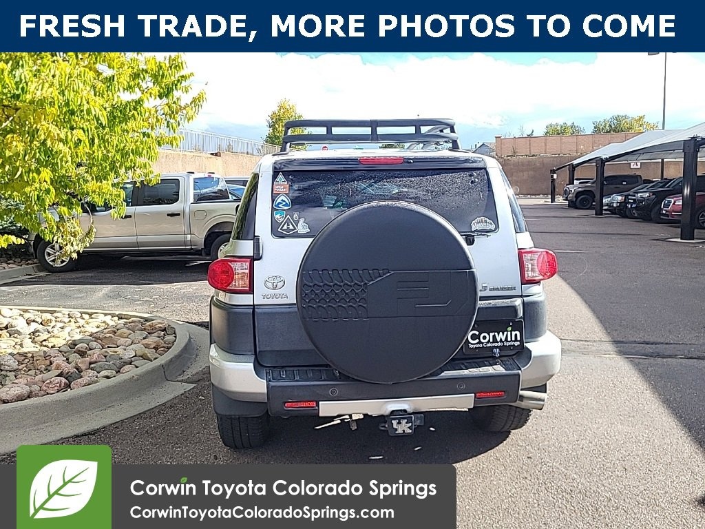This Toyota FJ Cruiser is well equipped and includes the following features and benefits, 4WD, 12V & 115V Accessory Connector, 17" Aluminum Wheels w/Spare Tire, Active Traction Control (A-TRAC), Convenience Package, Exterior Color-Keyed Door Trim Inserts, First Aid Kit, Leather Steering Wheel w/Audio Controls, Multi-Informational Trip Computer, Passenger Side Armrest, Preferred Premium Accessory Package, Rear Door Storage, Upgrade Package #1. Odometer is 4110 miles below market average!