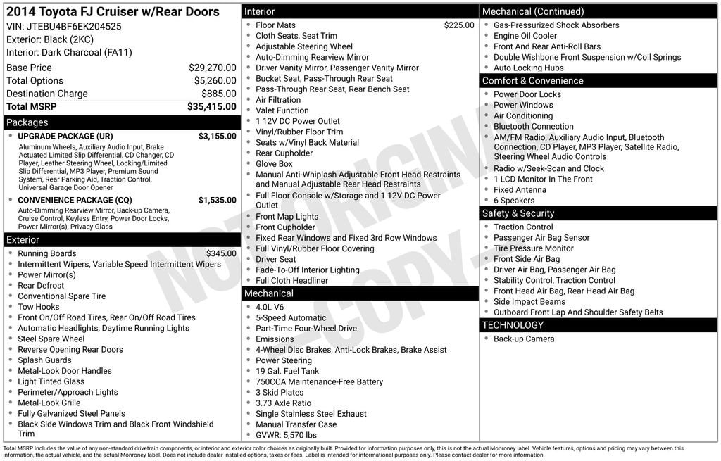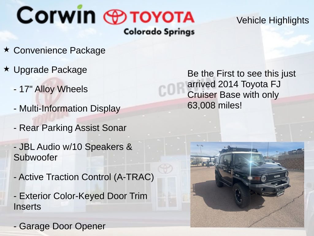 Escape the ordinary and embrace the extraordinary with this 2014 Toyota FJ Cruiser Base. We look forward to the opportunity to earn your business and help you find the perfect vehicle for your lifestyle.