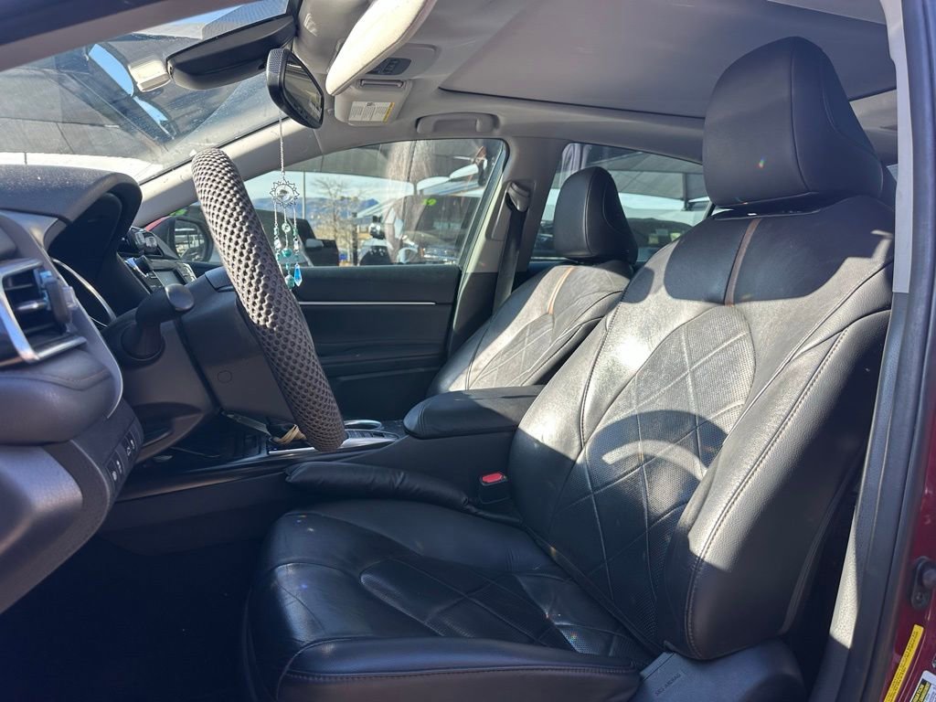 This Toyota Camry is well equipped and includes the following features and benefits, Panoramic Glass Roof, Entune 3.0 Audio w/ Connected Nav Scout GPS Link App & App Suite:7" Tch Screen 6 Spkrs, Bluetooth, USB, AUX, Leather-Trimmed Heated Front Seats w/ 8-Way Power Driver & Passenger Seats, Backup Camera w/ Dynamic Gridlines, 18" Chrome Machined-Finish Alloy Wheels, Toyota Safety Sense-P: Pre-Collision Sys w/Pedestrian Detection, Dynamic Radar Cruise Control, Lane Departure Alert w/ Steering Assist, Automatic High Beams. 28/39 City/Highway MPG