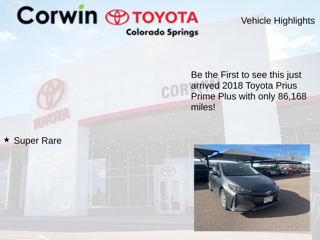 This Toyota Prius Prime is well equipped and includes the following features and benefits, Super Rare, Driver Monitoring-Alert Outboard Front Lap And Shoulder Safety Belts -inc: Height Adjusters and Pretensioners Back-Up Camera Side Impact Beams Dual Stage Driver And Passenger Seat-Mounted Side Airbags Collision Mitigation-Front Low Tire Pressure Warning Dual Stage Driver And Passenger Front Airbags Curtain 1st And 2nd Row Airbags Airbag Occupancy Sensor Driver Knee Airbag and Passenger Cushion Front Airbag Rear Child Safety Locks, Liftgate Rear Cargo Access Light Tinted Glass Fixed Rear Window w/Defroster Body-Colored Power Heated Side Mirrors w/Manual Folding Body-Colored Door Handles Black Side Windows Trim and Black Front Windshield Trim Body-Colored Rear Bumper w/Black Rub Strip/Fascia Accent Body-Colored Front Bumper w/Black Rub Strip/Fascia Accent Clearcoat Paint Spare Tire Mobility Kit Tires: P195/65R15 AS Galvanized Steel/Aluminum/Composite Panels Black Grille LED Brakelights Headlights-Automatic Highbeams Laminated Glass Tire Mobility Kit, Outside Temp Gauge Delayed Accessory Power Systems Monitor Full Floor Console w/Covered Storage, Mini Overhead Console w/Storage, Rear Console w/Storage and 2 12V DC Power Outlets Driver And Passenger Door Bins Smart Device Integration Cargo Space Lights Cargo Features -inc: Spare Tire Mobility Kit Roll-Up Cargo Cover Cargo Area Concealed Storage Carpet Floor Trim Full Carpet Floor Covering Fade-To-Off Interior Lighting Front Map Lights Automatic Air Conditioning Digital Appearance Driver And Passenger Heated-Cushion, Driver And Passenger Heated-Seatback Manual Adjustable Front Head Restraints and Manual Adjustable Rear Head Restraints Front Center Armrest and Rear Center Armrest 2 Seatback Storage Pockets Engine Immobilizer.