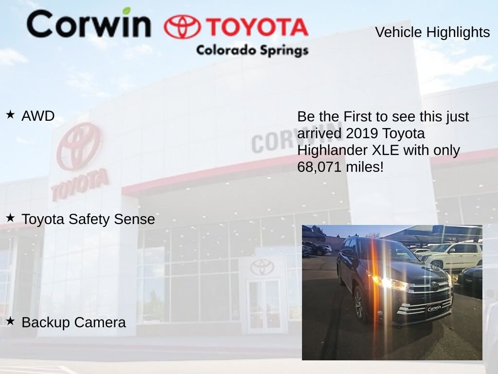 This Toyota Highlander is well equipped and includes the following features and benefits, AWD, Toyota Safety Sense, Backup Camera. Odometer is 31662 miles below market average! 20/26 City/Highway MPG